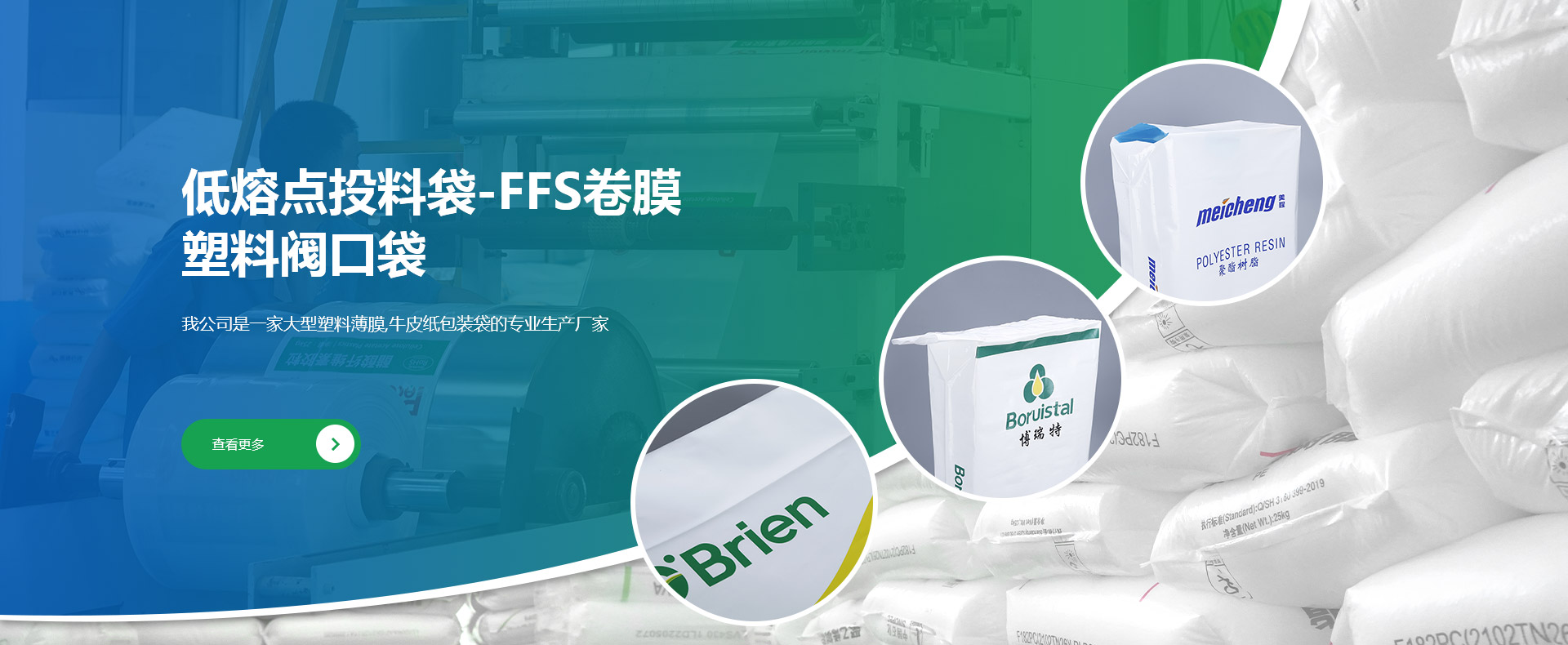 公司創(chuàng)建于1998年,是專業(yè)研發(fā)、生產(chǎn)和銷售低熔點橡膠投料袋、EVA閥口袋、LDPE多層閥口袋、EVA/LDPE低熔點膜、橡膠包裝膜、FFS重包裝袋、普通塑料包裝袋、牛皮紙閥口袋等產(chǎn)品的綜合包裝類企業(yè)